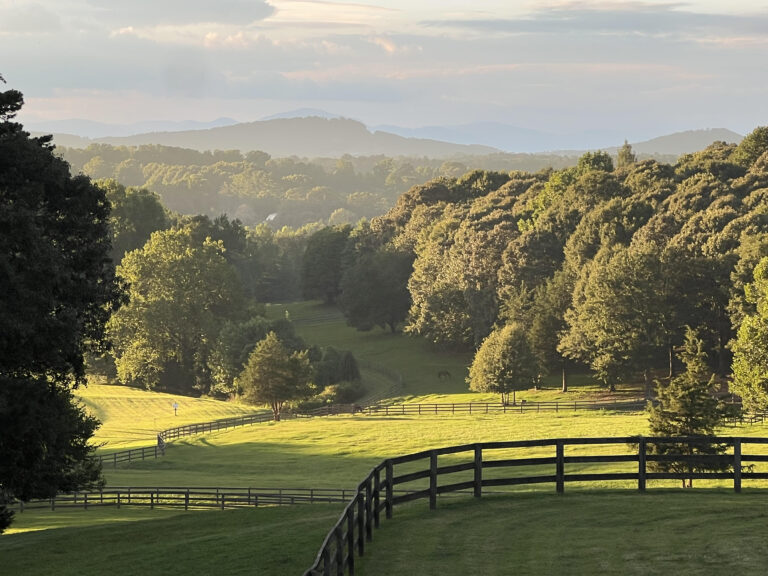 Caroland Farms, located in the gently rolling Piedmont edge of the Blue Ridge Mountains, commands sweeping panoramic views of the mountains to the north and west. Within the farms, the Pacolet River and its tributaries have defined the landscape with deep valleys, broad flood plains and ecologically rich wetlands that are in view of many of the country home sites. White and red oaks, willow oaks, sweetgums, beech and river birch dominate the natural wooded areas. These stands are complimented by evergreen plantations of loblolly with American holly and Virginia red ceders interspersed. Flowering dogwoods and southern magnolias provide seasonal delights to the eye. Native wildflowers are found along the roadsides and in less cultivated areas.